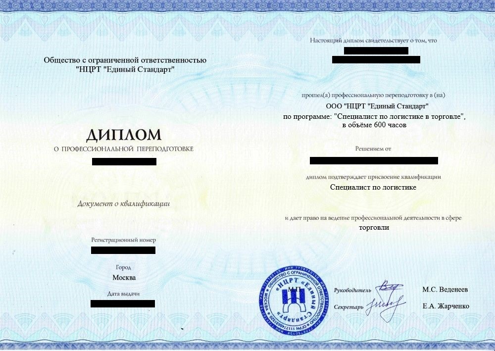 • «Специалист по логистике» с правом осуществления профессиональной деятельности в сфере торговли