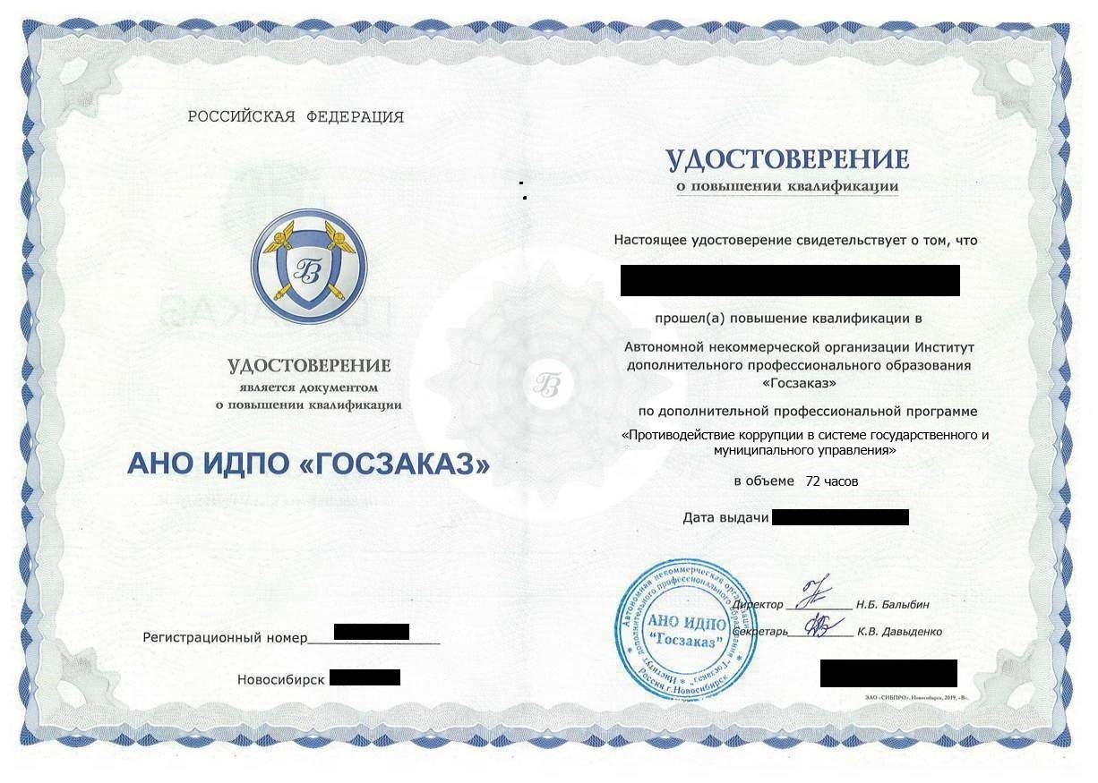 • Удостоверение о повышении квалификации установленного образца. Срок действия: 5 лет