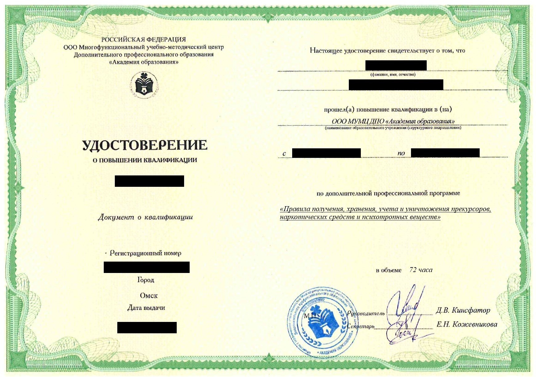 Повышение квалификации правила получения, хранения, учета и уничтожения прекурсоров, наркотических средств и психотропных веществ в Рязани